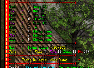 -Mở chức năng thống kê xung quanh : hiển thị số lượng acc theo màu, theo bang, thống kê các acc cùng bang hội xung quanh (tiện cho hoạt động săn boss phát lương)